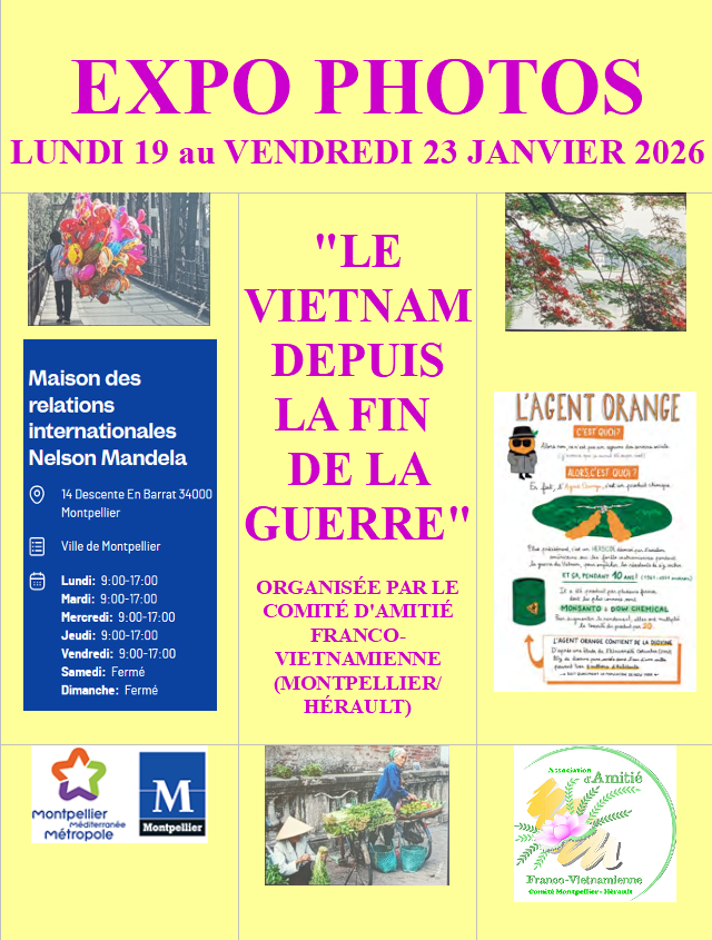 OUTRE LES PHOTOS MAGNIFIQUES DU VIETNAM, DIX PANNEAUX SUR L’AGENT ORANGE Le comité Montpellier-Hérault,Comités locaux | 10 janvier 2026 « Soutenir les enfants à l’école »